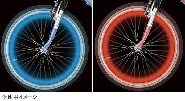 | 自転車のタイヤにある空気バルブに簡単に取り付けが出来るセーフティライトです。振動を感知すると自動で点灯し、自分の存在や注意をアピールできるので安全確保に最適です。 |