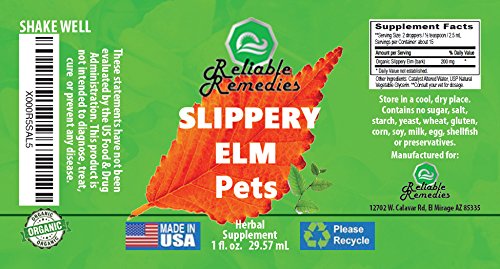 -. Feature : Want A Reliable Company That Backs Their Product With A Super Guarantee? - Want It Delivered Fast? - Want A Top Quality, High Potency, and Organic Product? - Customer Satisfaction Remains Our Top P.R.Iority! - That's Why You Can't Beat This Deal Anywhere! / Made In The USA! - Organic Liquid Extract! (For Fastest Results) - All Natural! - Alcohol Free! - Slippery Elm For Pets from "Reliable Remedies!" - Cold Pressed Process! - Nothing Synthetic! - No Additives! - No Preservatives! - No Gmo's! - No Artificial Ingredients! It Just Doesn't Get Any Better Than This! / P.R.Ime Members Delight In Free Shipping with Amazon, And Non-P.R.Ime Members Can Also Revel In This Amazing Offer! - Are You Ready To Take Advantage Of Free Shipping On Orders Over $35.00?! - We Are Proud To Say That, This Offer Is For Everyone! - Savings Have Never Been Easier! - It's Customers Favorite Part! / That's Right! (Act Now And Get A $25.79 Value for 0nly $20.79! - You Save 19%!) - Buy 2 Or More And Get 19% Off, And Get FREE SHIPPING! - That's Savings In The Best Place, Your Pocket! - (Limited Time Offer) / What Are You Waiting For? - If you're Getting Excited about the Reviews and Results of Our Wonderful Customers, This Is Great! - Better Yet! - Click Add To Cart Now And Experience Outstanding Results Of Slippery Elm For Pets From Reliable Remedies For Yourself!