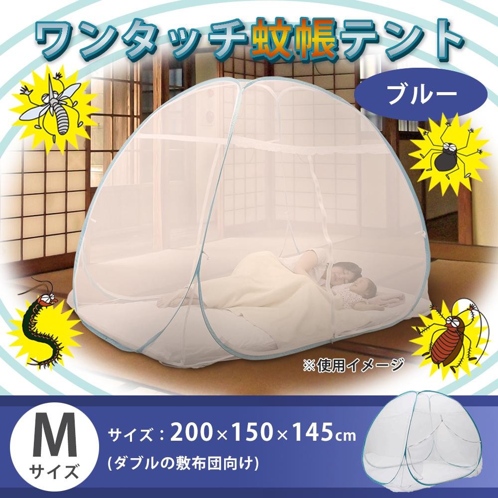 | 底からの進入もしっかり防ぐ、テントタイプの蚊帳です。吊るす必要もなく広げるだけで設置可能♪寝ている間のうっとうしい蚊や、キケンなムカデ、見かけたら不安で眠れないゴキブリやクモなどが出た際にオススメです。四方に付いたゴムバンドをマットレスに挟めば、ベッドにも設置可能です。 |