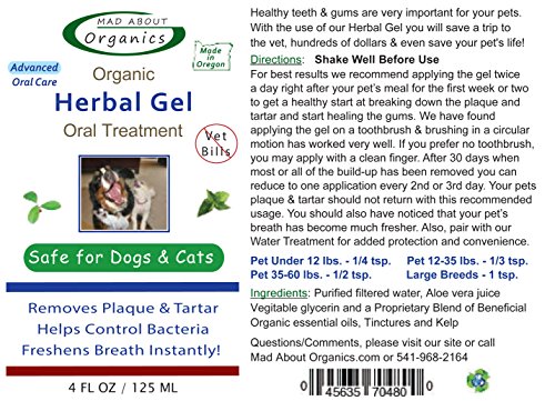 -. Title : Mad About Organics All Natural Dog Cat Pet Herbal Gel Oral Dental Plaque Remover 4oz