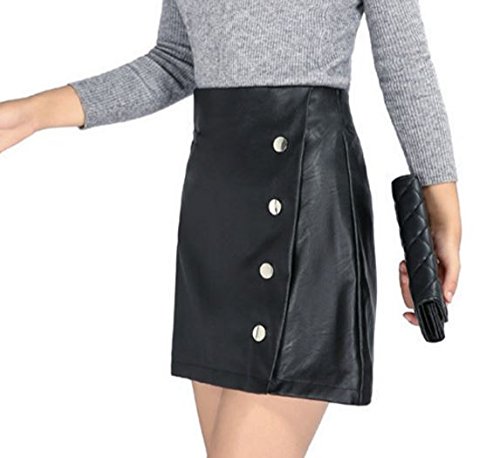 -. Title : 【Referica】 フェイクレザー 飾りボタン付き タイトスカート 膝上丈
