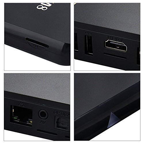 - Feature : M8 TV Box has a Amlogic S802 Quad core Cortex A9@ 2GHz ,Octa-Core Mali-450 GPU. / 2G DDR3, 8GB Nand flash, Bluetooth 4.0, Built-in Wifi, with standard RJ45 port, you can enjoy watching videos, playing games, surfing the internet, etc.Built-in SD card slot, support SD card up to 32GB. / Android TV is a small box that plugs into the HDMI port on your TV and uses wifi to connect to the internet, turning your TV into a working Android Tablet and media player. / Support for up to 1080p High Definition Playback,Full Hardware Acceleration,you could play almost all the media files downloaded from internet, support subtitles. / Support to play 3D blu-ray and Blu-ray ISO format video and movies directly,Supports nearly all formats of videos, audios, pictures.