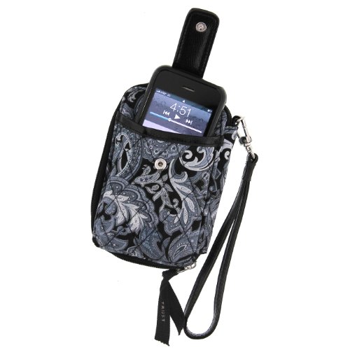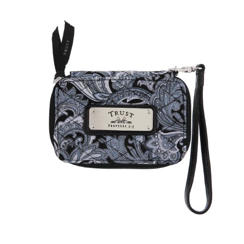-. Title : Gray Quilted Paisley All-in-One Wristlet w/"Trust" Badge - Phone Case & Wallet