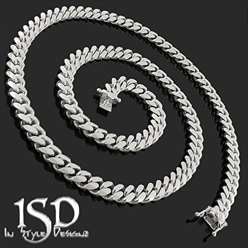 - Title : .925 Sterling Silver 7.5mm Solid Miami Cuban Curb Link Necklace Chain Rhodium Plated 24" - 26" (30 Inches)