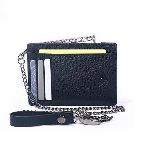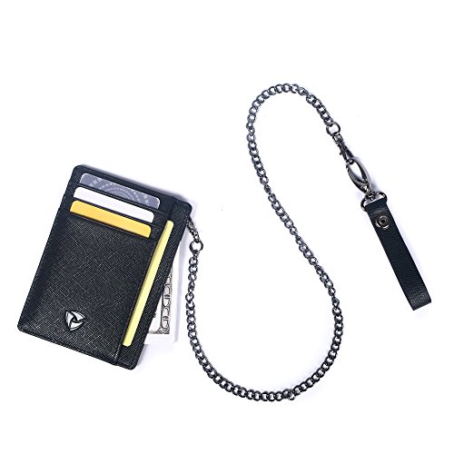 -. Binding : Apparel -. Brand : SOS EDC -. Color : Black -. Department : mens -. EAN : 0711436997955 -. Feature : FUNCTIONAL MINIMALIST DESIGN - 6 card slots, 1 ID window and 1 cash or receipt pocket (Measure: 4.4 " x 3.15" x 0.12"), say good bye to bulky wallets. Ultra slim design makes it easy to slide into your front or back pocket; clear finger glide for the ID window making it quick and easy to take your ID card or driver license in and out. / CARRY WITH PEACE OF MIND - With the beautiful 23-inch removable leather belt loop metal chain, you can now carry the wallet in the front or rear pocket without the worry of losing the wallet. And with RFID blocking feature, your credit cards will Stay SAFE and PROTECTED from Electronic Pick pocketing; Blocking all RFID scanners and readers. / CARRY WITH STYLE - This wallet goes great with your casual and formal dress code. / GREAT GIFT IDEA - This wallet comes with a beautiful gift box. Great for personal use & gifting friends & love ones. They will be absolutely delighted. / HIGH QUALITY YOU CAN TRUST - This wallet is made of very high quality & workmanship. Try this wallet out with 100% money back guarantee if not satisfied. -. IsAdultProduct : 0 -. PackageQuantity : 1 -. ProductGroup : Apparel -. ProductTypeName : ACCESSORY -. Size : Slim -. Title : Minimalist Saffiano Leather RFID Blocking Anti-theft Wallet with Removable Chain -. UPC : 711436997955