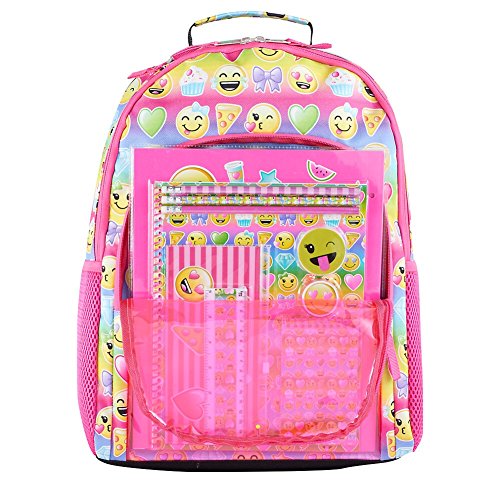 -. Feature : Emoji Design 12-piece Stationary Set / Age: 5 years & up Polyester / Back to School Ready / Backpack: 16" x 11.75" x 4.75" / Adjustable shoulder straps Mesh pockets Zip closure