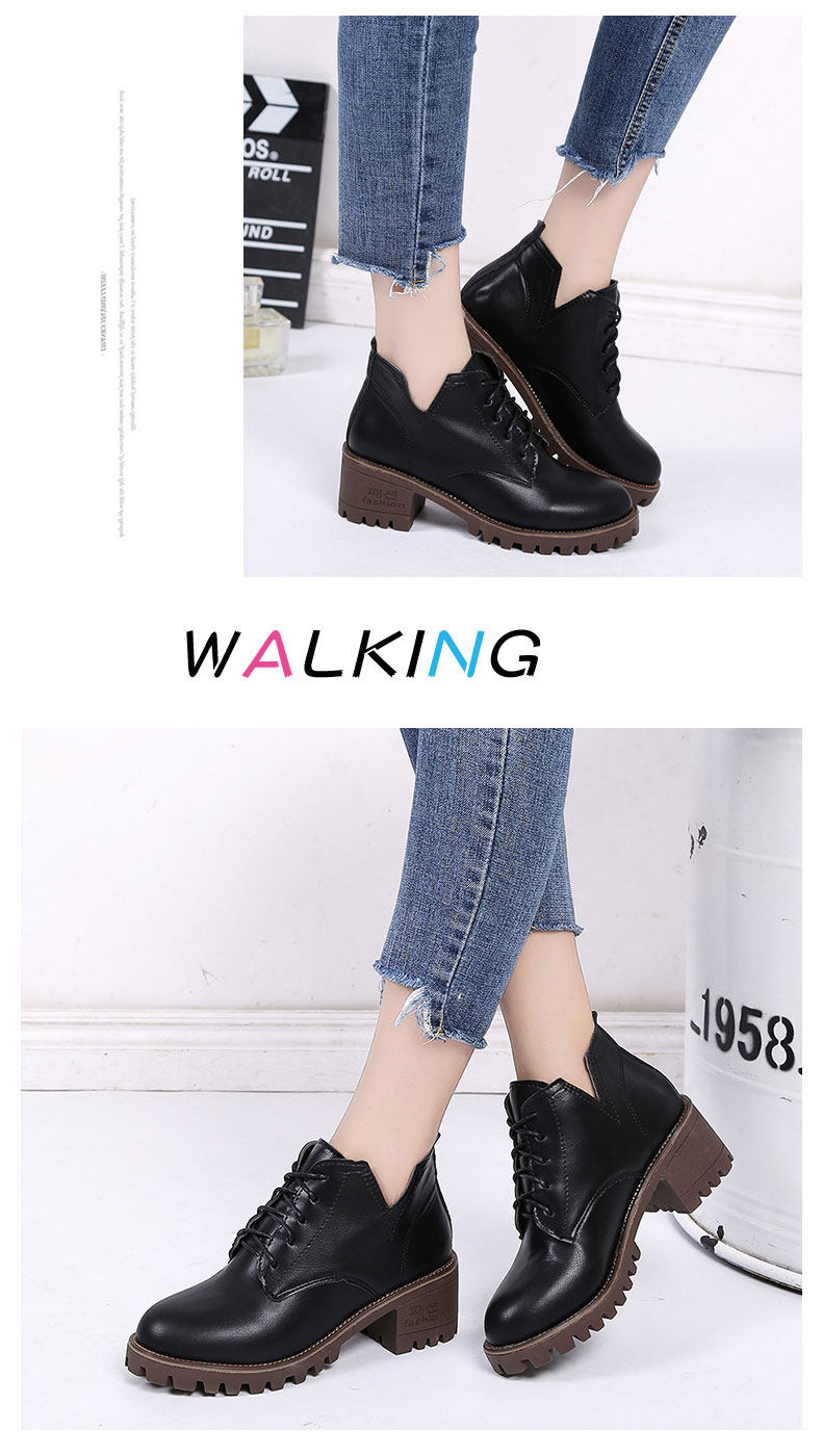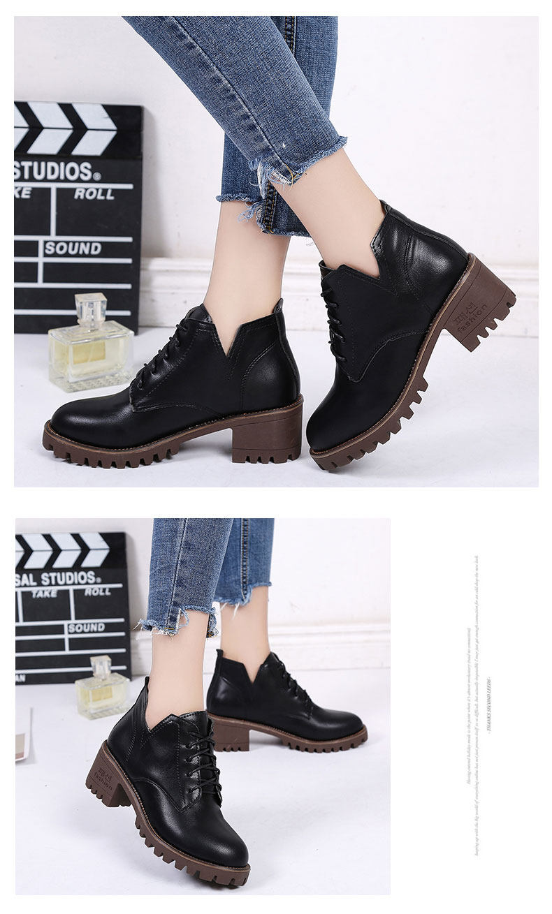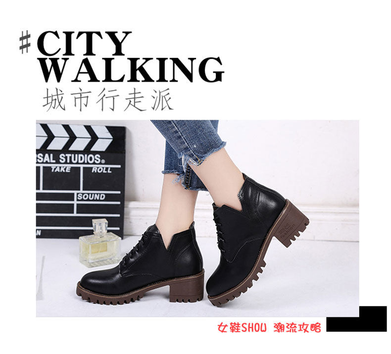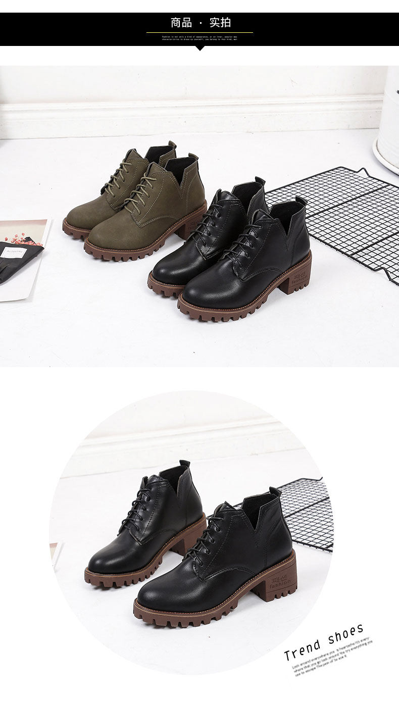 英伦风原宿马丁靴女秋冬季新款中跟短靴百搭学院风系带女鞋子