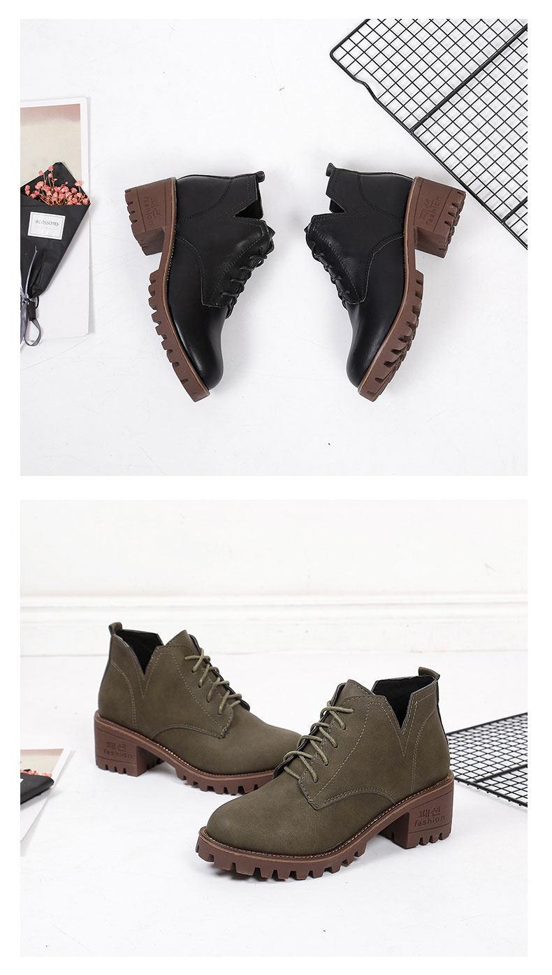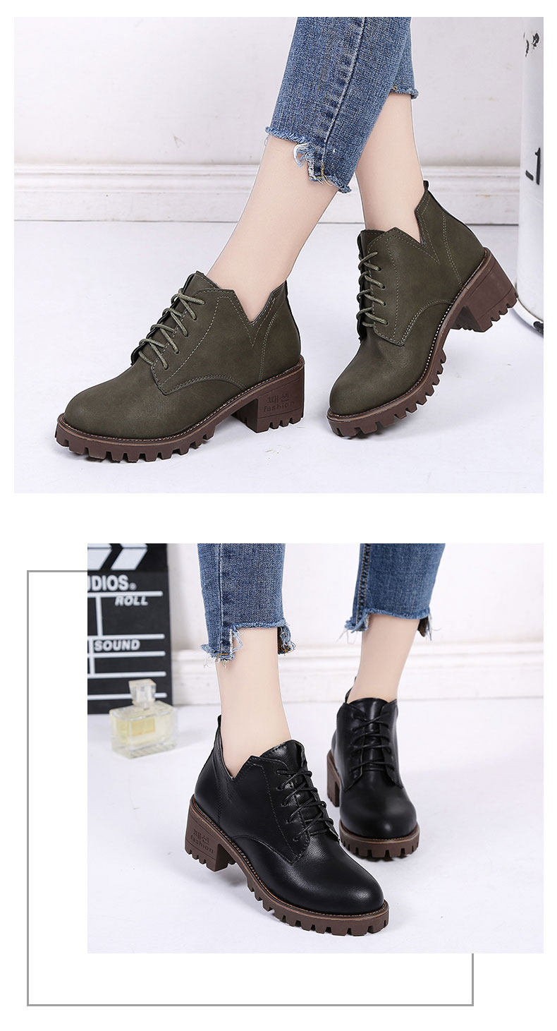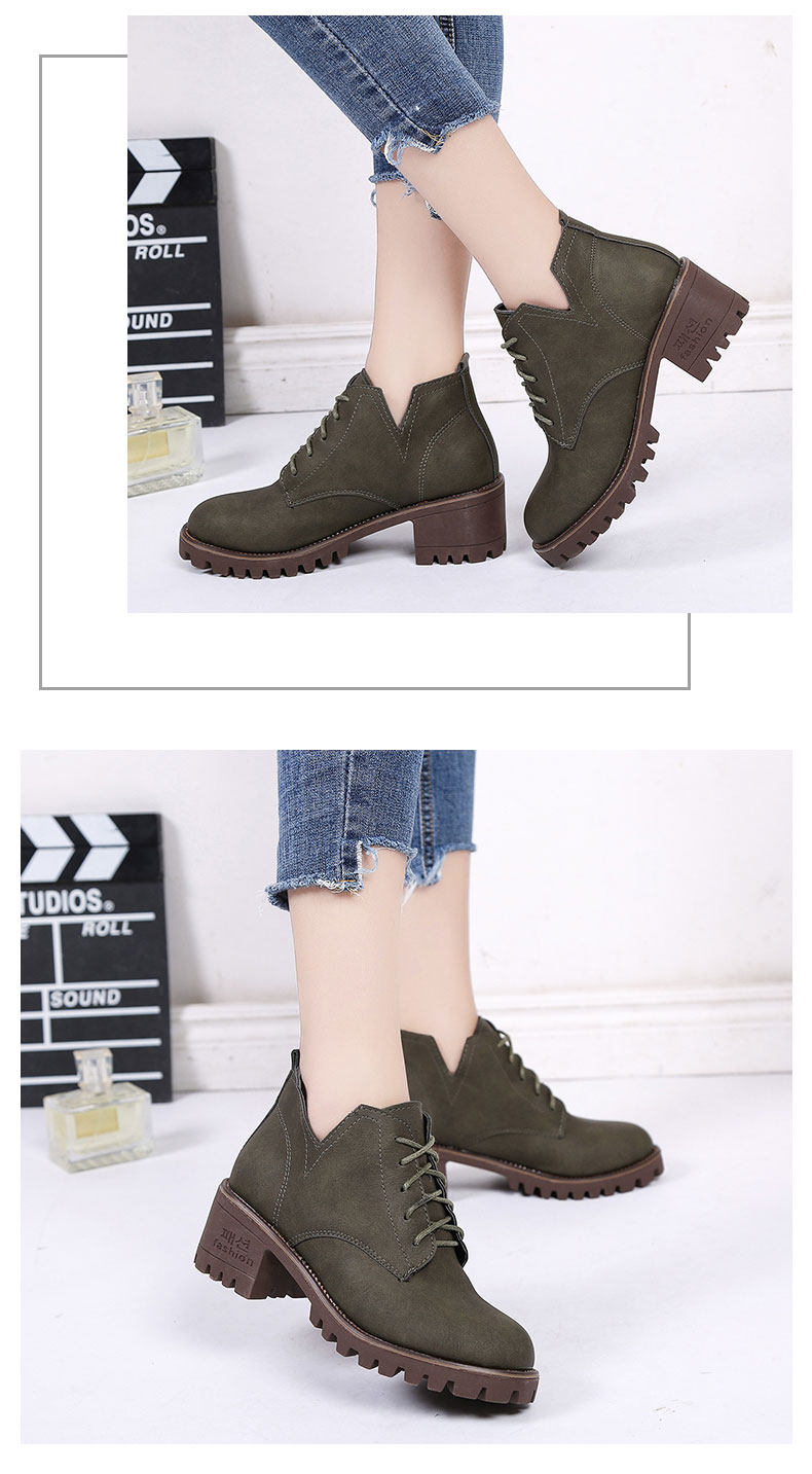 英伦风原宿马丁靴女秋冬季新款中跟短靴百搭学院风系带女鞋子