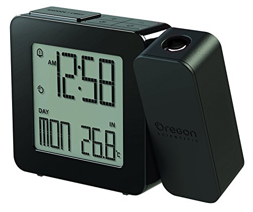 Our Oregon Scientific RM338PA is Simple and Fashionable! Rather than being an ordinary projection clock, this Classic Projection Clock goes one step further by providing the Indoor Temperature and Atomic Time. The projection shows clearly on the wall or ceiling the Time even when you are lying on the bed in the morning. The Angle is adjustable with the projection arm so as to offer a unique way to read time by casting a soft glowing display of red numbers on the wall or ceiling or just about any surface. The Dual Alarm helps fit any lifestyle. With a full set of features of Indoor temperature, Atomic time and date, Dual alarm and a Backlight display, this is also the perfect Gift for anyone. A design that suits the taste of people with different lifestyles. This model comes with all the features that can meet the need of the most demanding gift-hunter. Enjoy giving and receiving.Feature