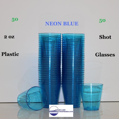 -. Title : 2 oz Neon Blue Plastic Shot Glasses - 2 ounce Blacklight Reactive Cups - Pack of 50