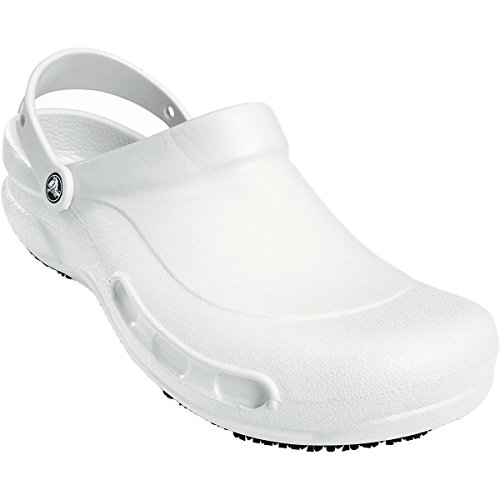 Studio : crocs Publisher : crocs Binding : Shoes Product Description The Bistro is designed specifically for those in the foodservice industry. Crocs Lock tread meets industry slip resistant standards. Provides increased traction. Enclosed design and thicker metatarsal area help protect foot from kitchen spills. Made with Croslite material conforms to foot creating custom fit. Easy to clean: Simply use soap and water. 0