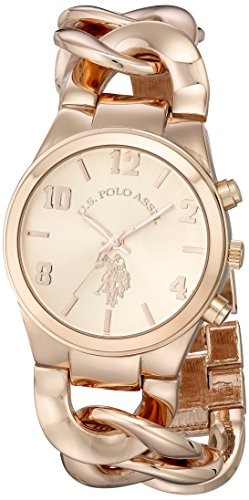 -. Binding : Watch -. Brand : U.S. Polo Assn. -. Department : womens -. EAN : 0030506372110 -. Feature : Rose-tone watch featuring logoed dial and oversized-link bracelet / 38 mm metal case with glass dial window / Quartz movement with analog display / Alloy bracelet with jewelry-clasp closure / Not water resistant -. Label : U.S. Polo Assn. Sport -. Manufacturer : U.S. Polo Assn. Sport -. Model : USC40070 -. MPN : USC40070 -. PartNumber : USC40070 -. ProductGroup : Watch -. ProductTypeName : WATCH -. Publisher : U.S. Polo Assn. Sport -. Studio : U.S. Polo Assn. Sport -. Title : U.S. Polo Assn. Women's USC40070 Rose Gold-Tone Watch with Link Bracelet -. UPC : 030506372110