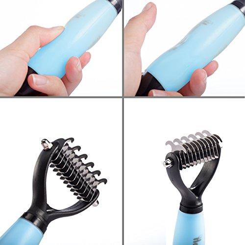 Pet Hair Combing Brush The function of this tool is to relieve your pet from the torture due to knotted or tangled hair or dead hair ,it is the best tool for the revoving knots and wastes, it helps you to prevent fur of animals from tangling in depth. Remember that it is a daily work of coat and massage to comfort the pets, your work will surely be paid when you see your pets become healthier and cleaner. Features: The ergonomic design for holding the handle, coated with silicone material, allowing you to hold the comb comfortably Suitable for all species of dogs: Teddy, Chihuahua, Husky, Golden Retriever, Tibetan mastiff and others cats, rabbits etc. Two rows of teeth: 6 teeth on one side, 11 on the other side Steel teeth are neither too sharp nor too blunt, your beloved pet's skin will not be hurt Specifications: Material: TPE / silicone Stainless steel needle Total length: approx.18cm/7.1"(the handle is approx.13cm/5.1" long) Width of the rake head: approx.6.8cm/2.7" Weight: approx.160g Color: Blue 100% Brand New Package Includes: 1 x Pet Hair Removal Rake 1 x Original Packing 0 |