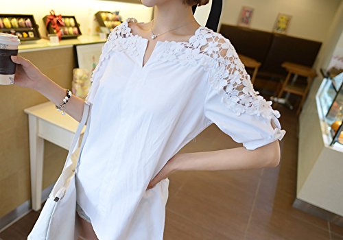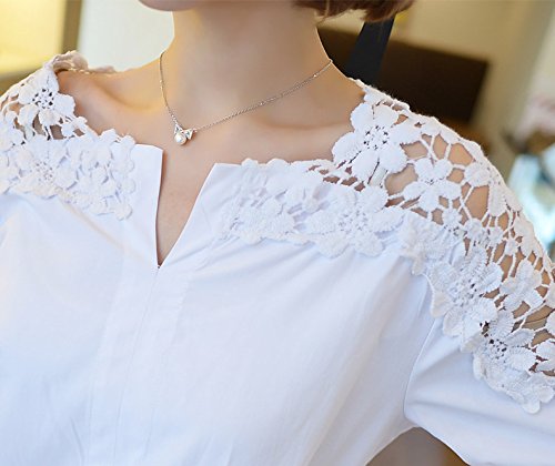 -. Feature : Sサイズ : 着丈 約 72cm バスト 約103cm 肩幅 37cm  Mサイズ : 着丈 約 73cm バスト 約110cm 肩幅 38cm / Lサイズ : 着丈 約 74cm バスト 約114cm 肩幅 39cm  XLサイズ :着丈 約 75cm バスト 約116cm 肩幅39cm / XXLサイズ : 着丈 約 76cm バスト 約118cm 肩幅 39cm / ファッション ランキング でも 人気 の 春 夏 秋 冬 オールシーズン 使える おしゃれ で 可愛い フェミニン デザイン の 白色 7分袖 の 婦人 衣服 シャツ。薄手 の コットン 生地 素材 綿100 だから、春服 夏服 としても 着心地よい。秋冬 は、その上から、アウター コート をどうぞ。 / きれいめ の シンプル シースルー 白レース の かわいい フラワーモチーフ の 模様 は 大人 の 女性 エレガント かつ カジュアル だから、デート 女子会 飲み会 クールビズ オフィス ワーク 通勤 通学 学生 OL 社会人 フォーマル な イベント にも おすすめ な 白の 編み物 シャツ。