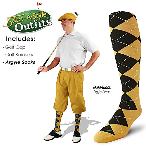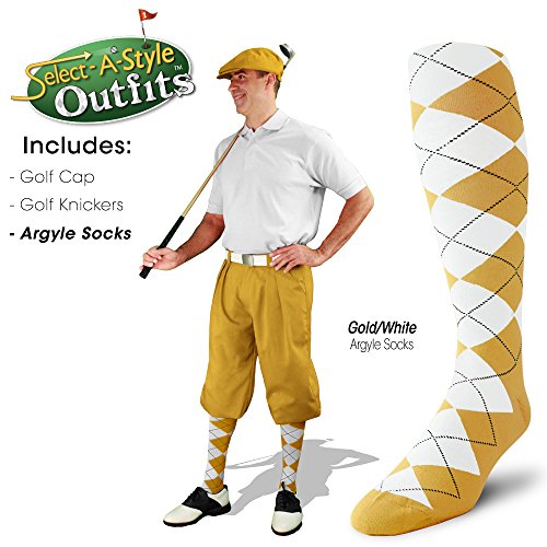 -. Feature : Includes: Mens Gold 'Par 3' Golf Knickers, Matching Par 3 Gold Cap, and Over-the-Calf Argyle Socks / Golf Knickers are made from 100% Microfiber Gabardine / Golf Caps are made from 100% Microfiber Gabardine / Argyle Golf Socks are made from 75% Cotton, 22% Nylon, 3% Spandex / Typically Ships Same Business Day