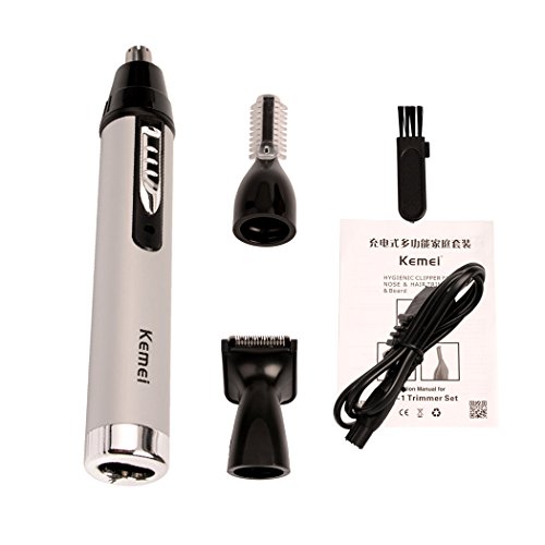 Feature : 3-in-1 multifunctional personal groomer tool, contains 3 replaceable heads, used to trim nose hair, ear hair, sideburns, eyebrows. / Body using ABS and aluminum alloy material. / Stainless steel sharp blade and fast shaving, painless. / Note: Only the head can be washed. / Used for man and woman.Cordless operation, contemporary design.