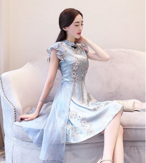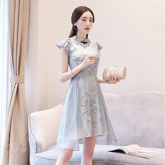 チャイナドレス風デザインの華やかなパーティードレスです。
