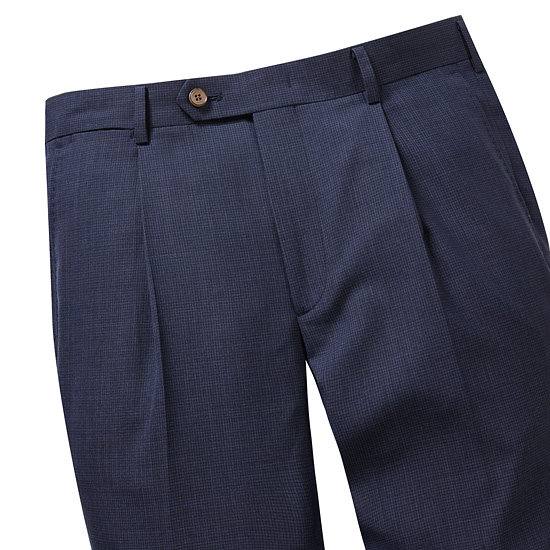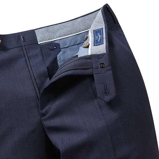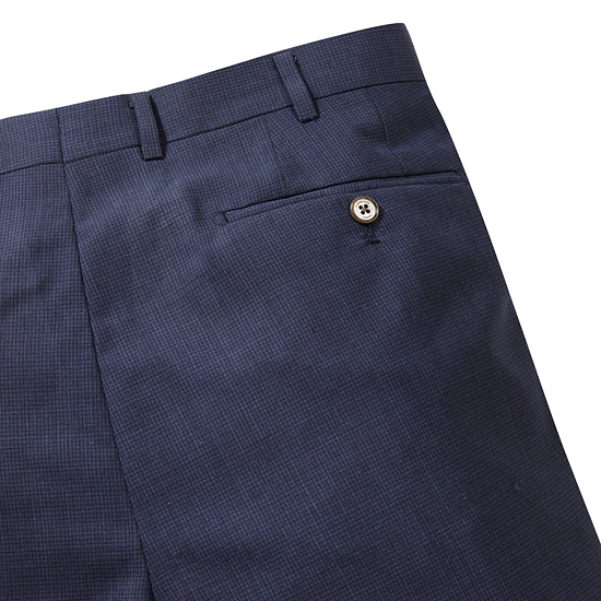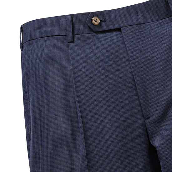 - 가로 세로 잔조직의 체크 패턴을 적용한 남성 팬츠.