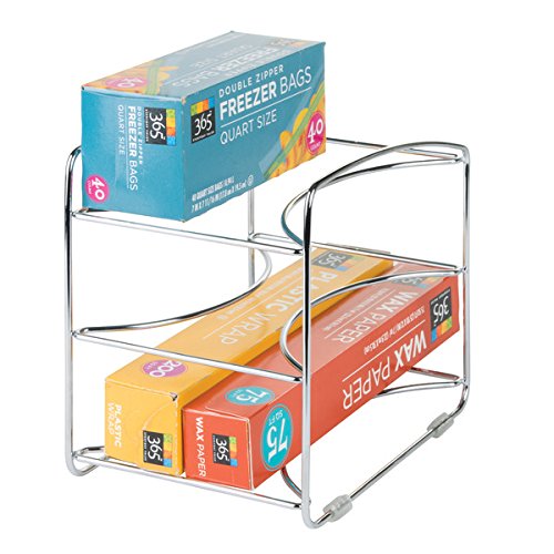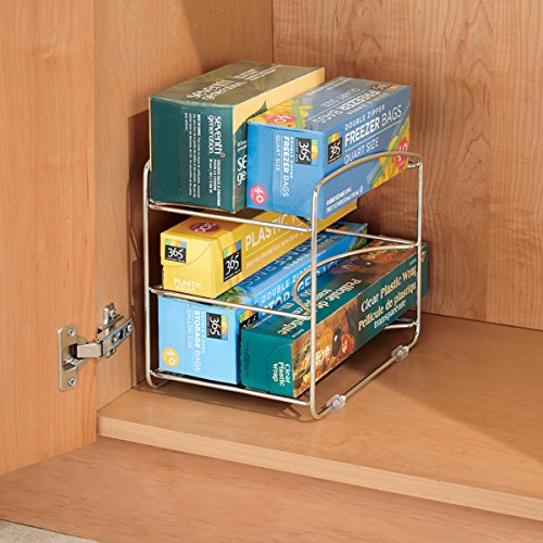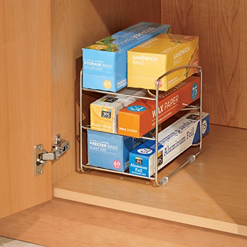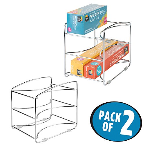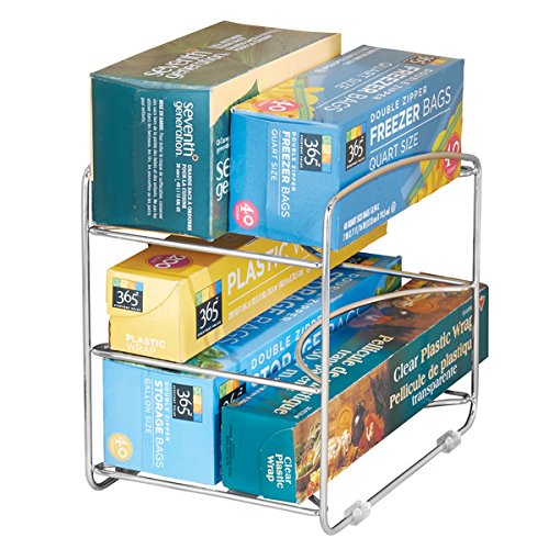 mDesign Kitchen Organizer Rack for Aluminum Foil, Sandwich Bags, Plastic Wrap - Pack of 2, 3 Shelves, Chrome
