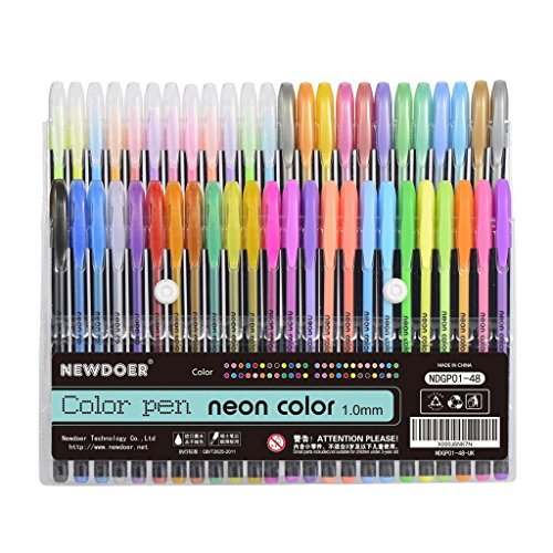 THE MOST AUTHORITATIVE COLORS STE - Depend on the analysis of a number of artists's work, Our research and development team selected the most commonly used 48 kinds of color sets,include 4 styles ink: Metallic, Glitter, Neon, WaterChalk. This gel pen set let your mind and express more freely. Your creativity will not be subject to any restrictions. / PROFESSIONAL LEVEL PERFECT WRITING EXPERIENCE - These color gel pens set provide you with superior, long-lasting, vibrant colors that will not skip, smear, or fade. Use the easy glide ink to maintain smooth lines in a flowing, regular pattern! / SAFE, EASY TO USE, AND PROFESSIONAL - We consider SAFETY a P.R.Imary concern, especially where children are involved.Scientific ink formulations, Standard production process, Make the gel pens are safe for you and children as they are both non-toxic and acid free. The special inks are both permanent and water resistant, So you never have to worry about blurring yours artwork! Each pen has a good performance,You will never want to let it go. / PERFECT FOR KIDS & ADULTS Great gel pens for Adult coloring books, sketch, draw, color, doodle, write and get creative in a fun and skilled way. Greeting cards, Party invites, Letters to friends and family, gel highlighter,arts and crafts, decoration, day care activity, scrap booking, the uses are endless / RISK-FREE PURCHASING & UNPARALLELED SUPPORT - Buy with confidence! Your gels Pen features a No-Questions-Asked, 30-DAY, Money-Back Guarantee.£¬if you don't absolutely LOVE this Newdoer gel Pens within the first 30 days, We'll take it back, no questions asked! unconditional.