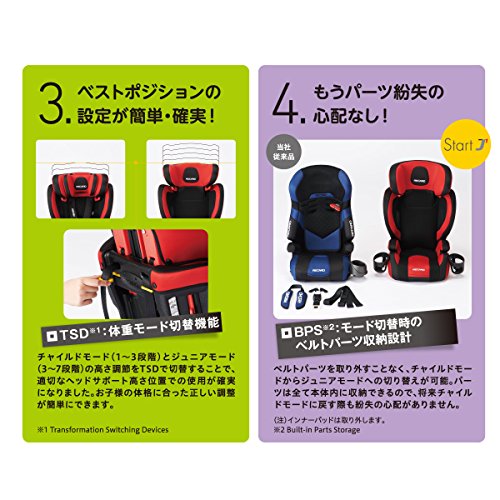 ・チャイルドモード(1~3段階)とジュニアモード(3~7段階)の高さ調節を『体重モード切り替え機能(TSD)』で切替することで、適切なヘッドサポートの高さ位置での使用が確実になりました。お子様の体格に合った正しい調整が簡単にできます。