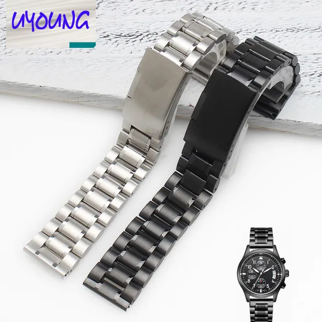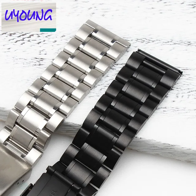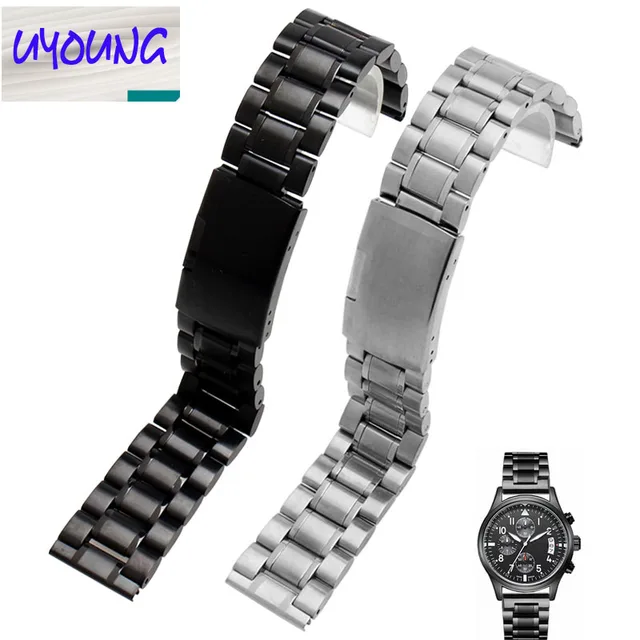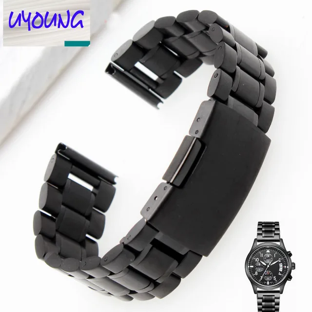 | [해외]Uyoung 새로운 블랙 스테인레스 스틸 시계 스트랩 금속 팔찌 시계 스트랩 여성 교체 + 도구 |