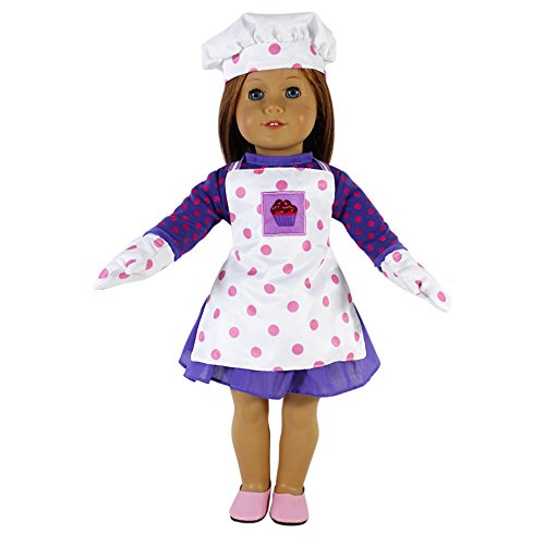 - Baking Doll Clothes for 18" Dolls: 5 Pc "Graceful Baker" Outfit - "Dress Along Dolly" (Includes Dress, Oven Mitts, Shoes, Apron and Chef's Hat)