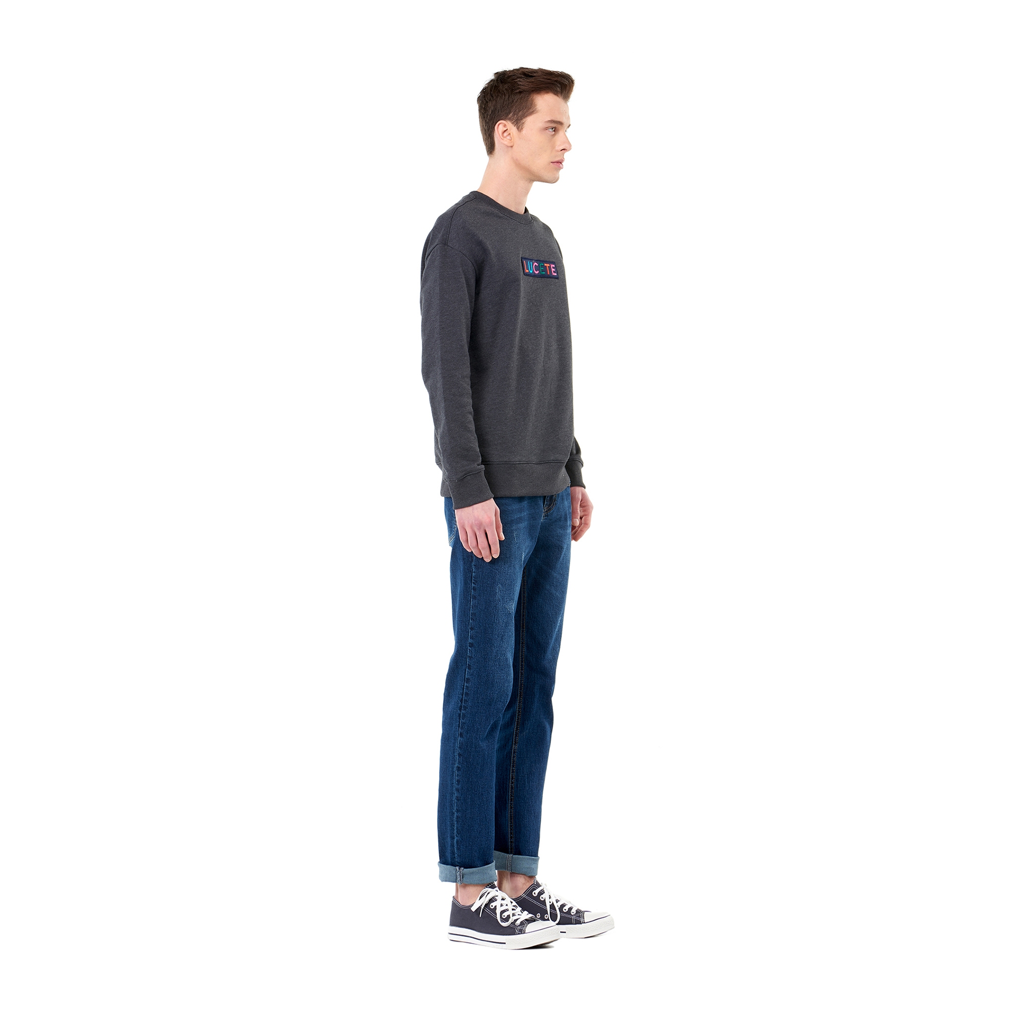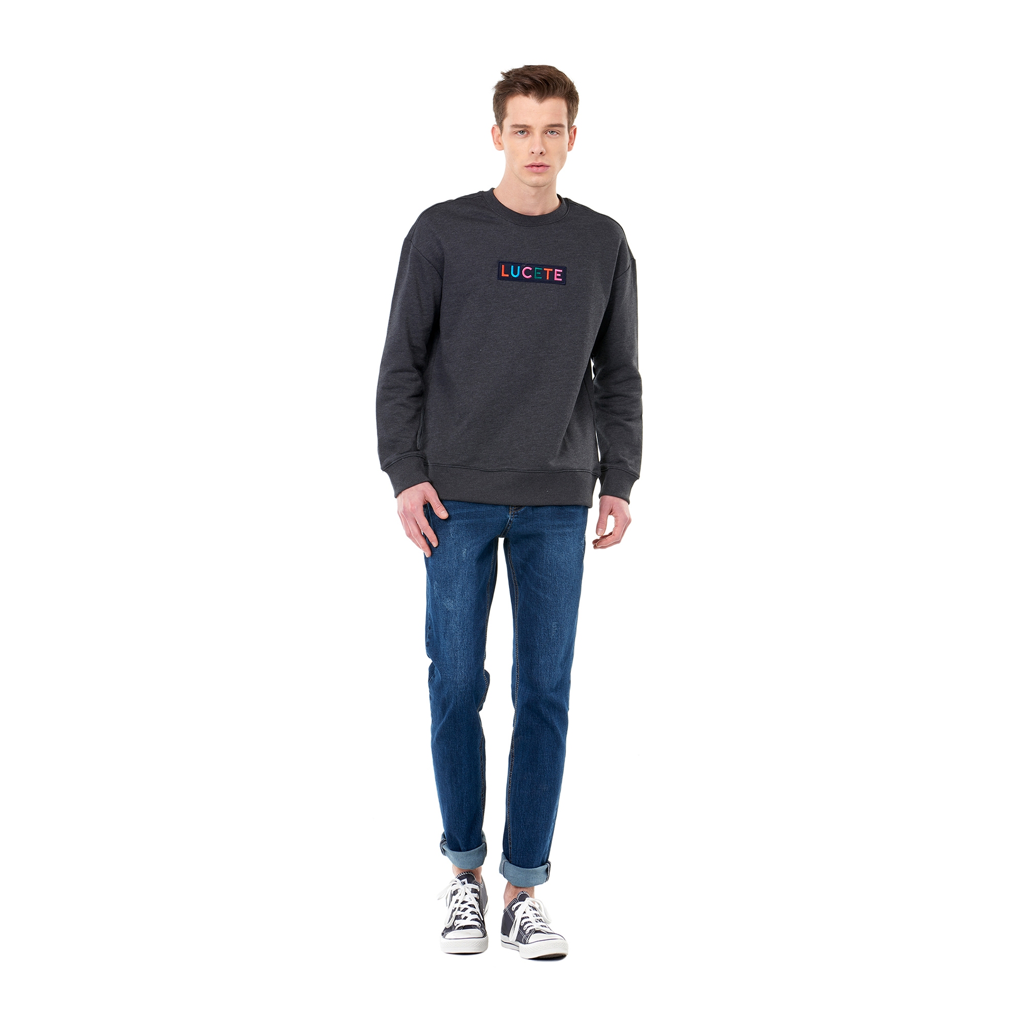 컬렉션 : 2017 Spring/Summer 디자인 포인트 : - 다양한 색상의 자수실로 레터링을 새긴 와펜 트리밍 포인트- 넥라인/소매/밑단 리브 소재 사용함 스타일링 추천 : 데님하의류 캐주얼하게 스타일링하기 좋음