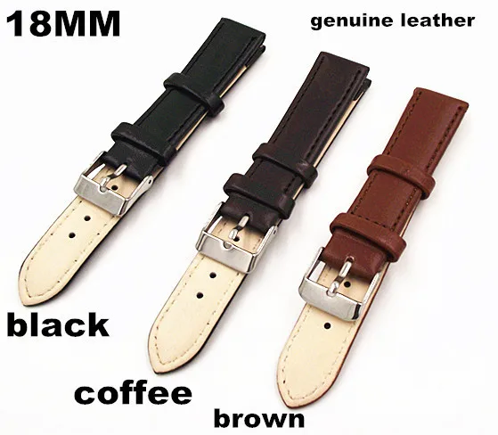 도매 30 개/ lot 고품질 18mm 시계 밴드 진짜 가죽으로 된 시계 끈 갈색, 커피, 검은 색 3 색상 가능