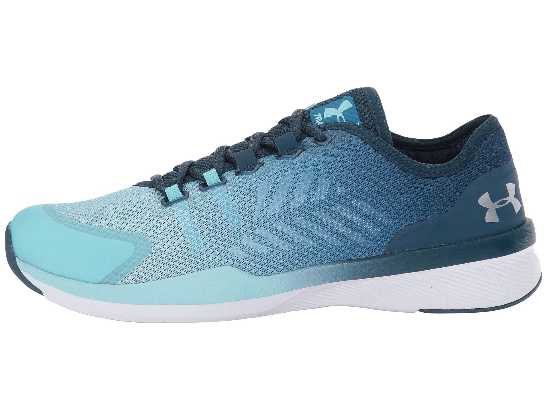 | Product Information SKU: #8798935Take your workout sesh to new limits in the Under Armour? UA Charged Push TR Segmented Color cross-training shoe!Breathable micromesh uppers with internal support saddle for added structure and a better fit. Dynamic webbing loops hug the foot for added support during multidirectional movements. Lace-up closure. Synthetic toe and heel overlays. Lightly padded tongue and collar. Breathable fabric lining offers a great in-shoe feel. Die-cut textile sockliner. Lateral rubber forefoot wrap adds traction and stability. Molded rubber sidewalls supply enhanced durability and support lateral movements. Charged Cushioning? provides optimally responsive cushioning. Cored out sections of the midsole offer less bulk and increased flexibility. Strategically-placed rubber outsole pods in high-wear areas for lasting wear. Multidirectional traction pattern at the outsole for grip over all surfaces. Imported. Product measurements were taken using size 7.5, width B - Medium. Please note that measurements may vary by size.Weight of footwear is based on a single item, not a pair.Measurements: Weight: 7 oz |