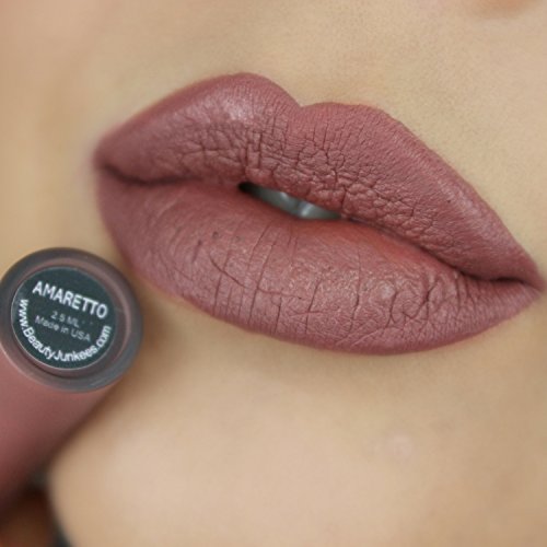 Studio : Beauty Junkees Publisher : Beauty Junkees Binding : Misc. Product Description Glides on like a lip gloss, with the pigment of lipstick. Dries fast to a long lasting matte finish.? You only need 1 coat! But it is buildable. Go with a hint of color or build by adding layers for a more intense bold look.? QUICK TIP: It's best to start with smooth lips before wearing liquid lipsticks. Use the Beauty Junkees Lip Pumice Exfoliator to take the dead skin off for a smooth application. If needed, apply a small amount of Vitamin E Stick to moisturize your lips. Blot off any excess with a tissue.? Try 1 or All 6 Shades! ? Vampirette: Deep dark red lip stain to get your vamp on! ? Soul Mate: Soft pinkish brown, like a dusty rose. ? Metallic Sorbet: Micro fine glitters give this rose gold a duo chrome look. ? Dinner Party: Dark red berry like your favorite wine! ? Caramel Latte: Rich sweet brown like java. ? Amaretto: Soft brown with mauve undertones. Do these dry out your lips??Many matte products dry out your lips, some more than others. Our formula is NOT drying and wears comfortably. Do these smell good??It has a slight hint of a vanilla but dissipates once it dries.? Do these clump up and dry sticky? NO, our formula does not clump. Some shades may be a bit sticky upon application but all dry to a non-sticky feel.? How many coats do you need to get the true color? It only takes one coat to achieve its true color but is buildable if you want a darker application.? Are they cruelty free??YES, all Beauty Junkees Cosmetics are cruelty free.? Are these lip glosses or liquid lipsticks??Our liquid lip formula is lipstick.? Does it crack??No.? GIVE YOUR LIPS SOME LOVE! Makes an awesome party favor gift for weddings and showers. Perfect Mothers Day gift for the beautiful women in your life! 0