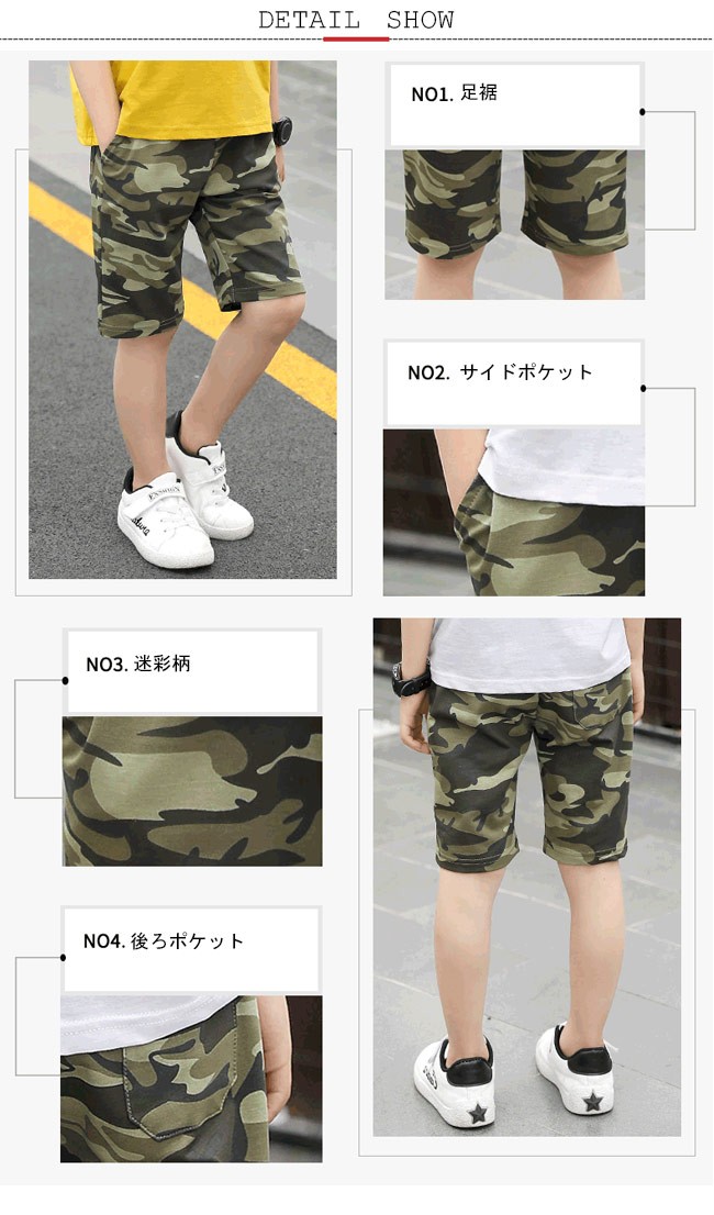 ハーフパンツ 迷彩柄 男の子 ウエストゴム 五分丈パンツ 男児 ボトムス 子供服 夏物 ゆったり 半ズボン カジュアル 短パン ジュニア男の子用の五分丈パンツが登場吸湿性・通気性に優れた綿混紡素材を厳選、爽やかな肌触りをもたらす定番の迷彩柄でカッコイイミリタリー風ファッションを演出ゆったりし過ぎずタイト過ぎずのストレートのシルエットで人選ばに履ける一枚カラー:グリーン ブルー素材 綿混紡サイズ(cm) 110 120 130 140 150 160110 総丈38 ヒップ70 ウエスト47120 総丈41 ヒップ74 ウエスト50130 総丈44 ヒップ78 ウエスト53140 総丈47 ヒップ82 ウエスト56150 総丈50 ヒップ86 ウエスト59160 総丈53 ヒップ90 ウエスト62ご注意:※サイズは平置きサイズです。素人採寸ですので、若干の誤差がございます、ご了承ください。