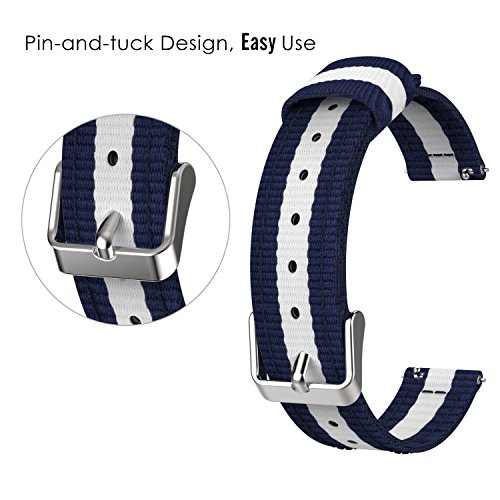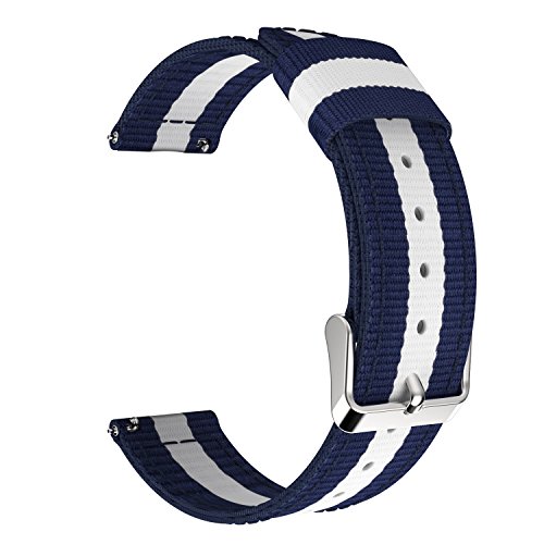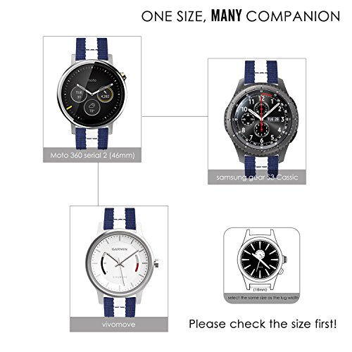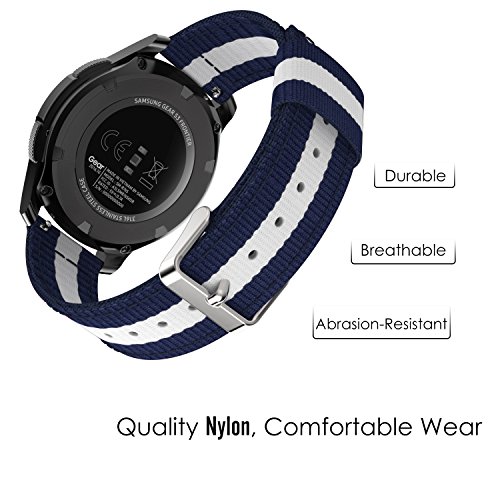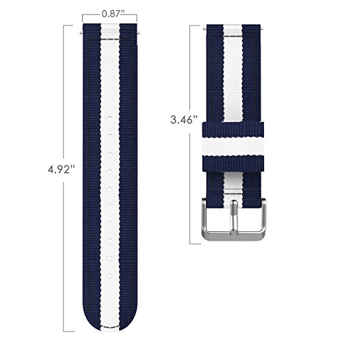 22mm Quick Release Universal Watch Band, MoKo Nylon Band Sports Strap for Amazfit/Samsung Gear S3 Frontier/S3 Classic/Motorola Moto 360 2nd Gen 46mm/Garmin Vivomove/Huawei 2 Classic, Blue & White