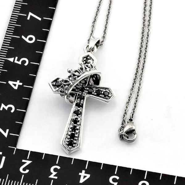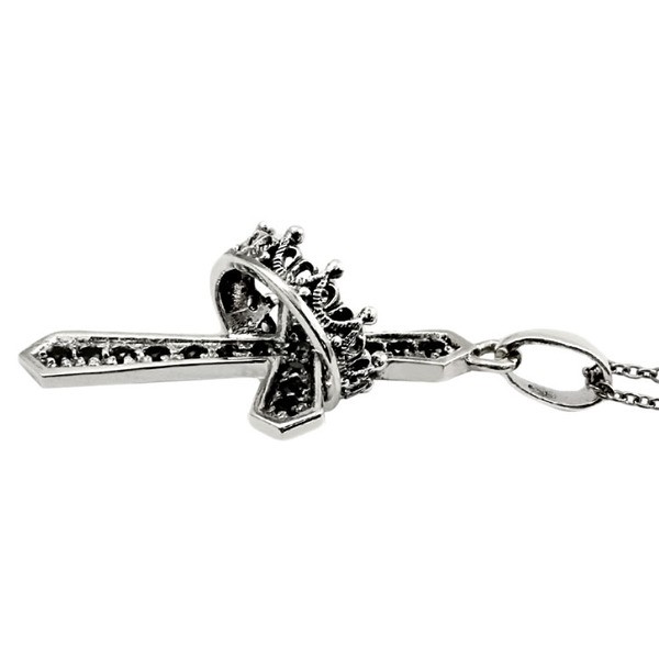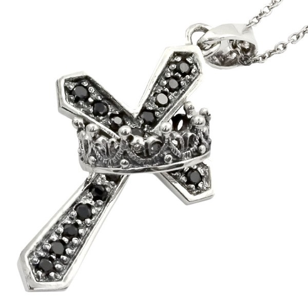 大きなクロスと王冠がポイントのRoyal Jokerソロモンクラウンクロスペンダント。ソロモン王は神から知恵(指輪)を授かったという一説があり、指輪状のクラウンがクロスにセットされ、更にクロス部分にはたくさんのブラックCZ(キュービックジルコニア)がセッティングされた由緒正しいペンダントです。カラー違いでホワイトCZもあるのでペアでもつけることができます。本物のシルバーだから出せる質感が堪能できるアイテムです。専用のケースが無料で付属するので、プレゼント・ギフトにとってもオススメです。
