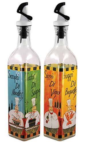 -. Binding : Kitchen -. Brand : Grant Howard -. Color : Clear -. EAN : 0023055508642 -. Feature : Colorful and whimsical Italian design / Gravity pouring spout for Hands free open and close use / Bottle holds 16 ounces of liquid / Measures 2-1/4" square by 11-1/4" high -. Label : Grant Howard -. Manufacturer : Grant Howard -. Model : 50864 -. NumberOfItems : 1 -. PackageQuantity : 1 -. ProductGroup : Kitchen -. ProductTypeName : KITCHEN -. Publisher : Grant Howard -. Studio : Grant Howard -. Title : Grant Howard 50864 16 oz Chef Leone Oil and Vinegar Cruet, Clear -. UPC : 023055508642