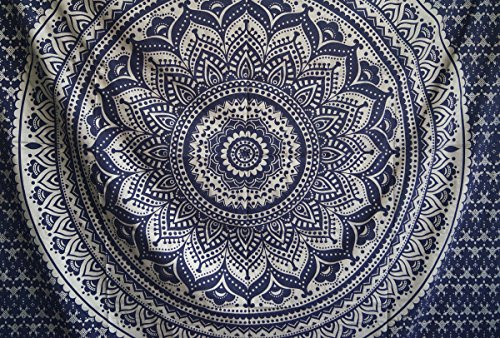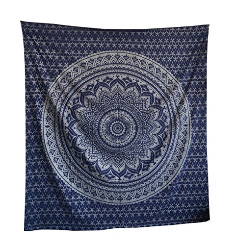 Tapestry Silver Ombra India Mandala Tapestry, Queen Indian Mandala Wall Art Hippie Wall Hanging Bohemian Bedspread By Shubhlaxmifashion