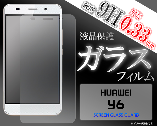 HUAWEI Y6の液晶画面を守る液晶保護ガラスフィルム。