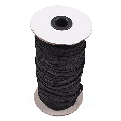 Black 70-Yards Length 1/4" Width Braided Elastic Cord/Elastic Band/Elastic Rope/Bungee/Black Heavy Stretch Knit Elastic Spool With Free Tape Measure