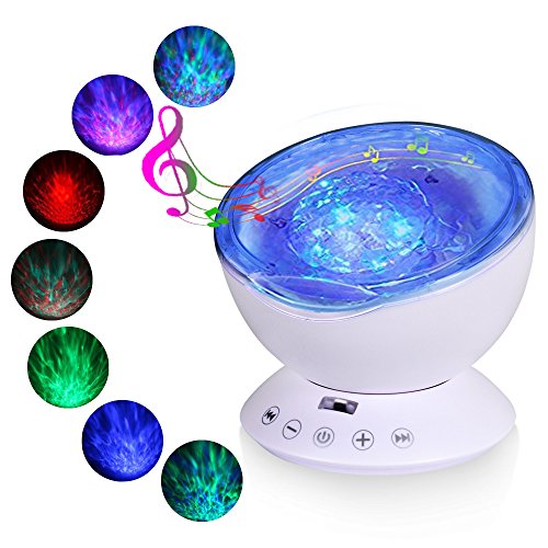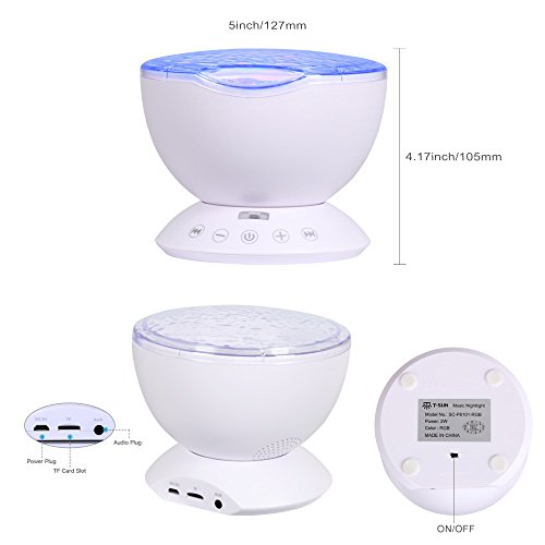 -. Title : Ocean Wave Night Light Projector, T-SUN 12 LEDs & 7 Color changing Modes Lights with Remote Control Built-in Music Player, Adjustable Relaxing Light for Baby Nursery, Living Room, Bedroom