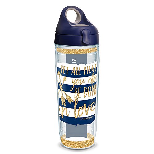 Tervis 1232371 Simply Southern Quote Sparkle Wrap Water Bottle with Navy WB Lid, 24 oz, Clear
