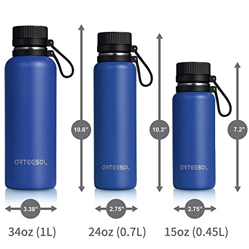 -. Title : ARTEESOL Water Bottle 25/34 oz (750/1000 ml) BPA Free Vacuum Insulated 18/8 Stainless Steel Leak-proof Double-Walled Wide Mouth Thermos for Sports Gym Workout, Cold or Hot for 12h Valentines Day Gifts
