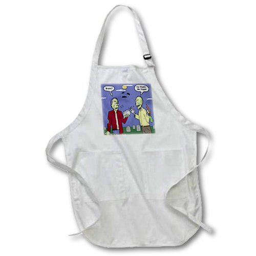3dRose apr_3810_1 Halloween Zombie Vegans Full Length Apron, 22 by 30", White, with Pockets