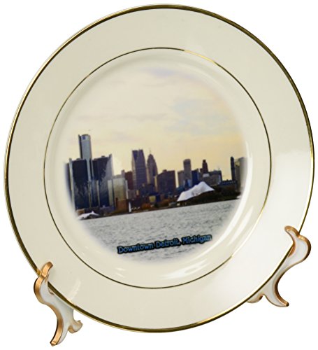 3dRose cp_57008_1 Downtown Detroit, Michigan Porcelain Plate, 8-Inch