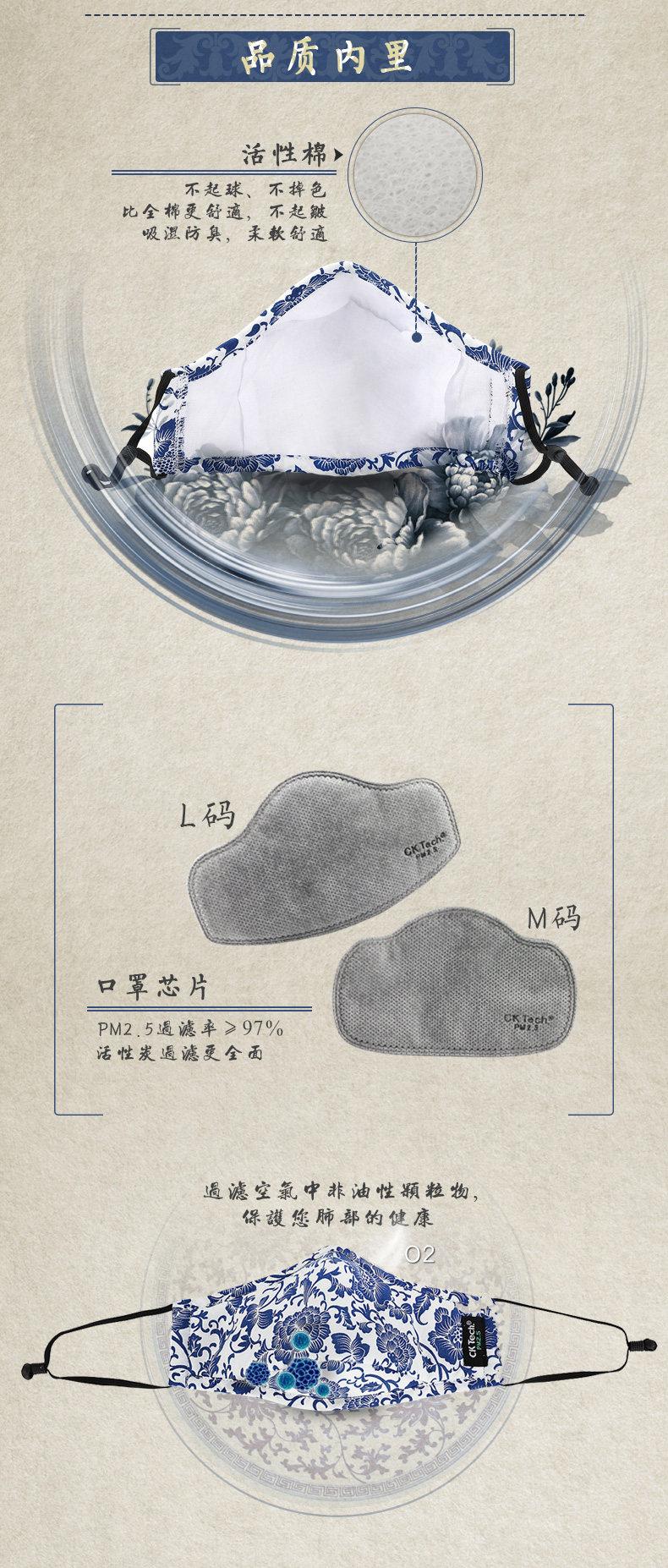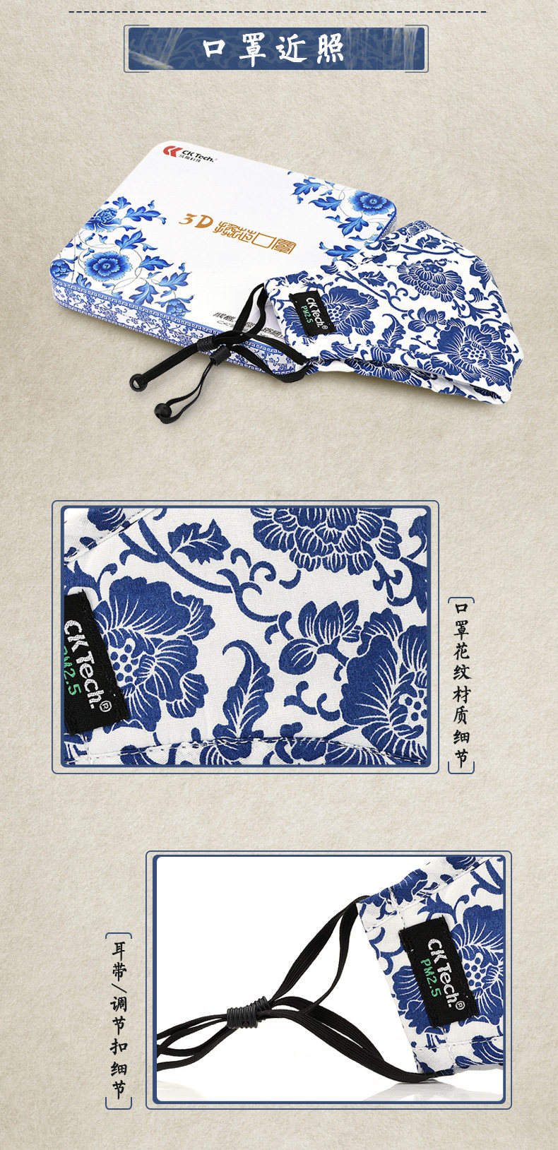 青花系列ck tech保暖防雾霾口罩个性防尘PM2.5时尚情侣男女冬防护