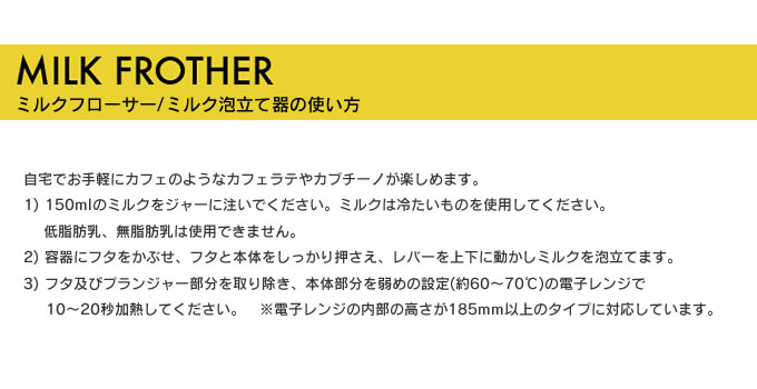 | 備考 | ※本体(耐熱ガラス部分)のみ電子レンジ使用可 ※電子レンジの内部の高さが18.5cm以上のタイプに対応しています。 |