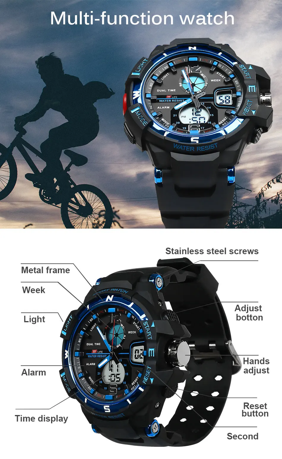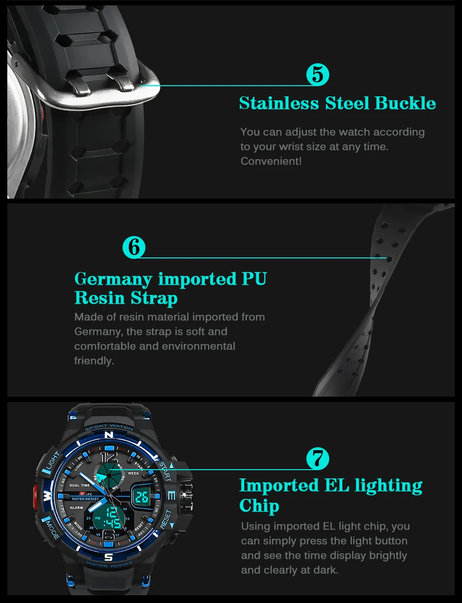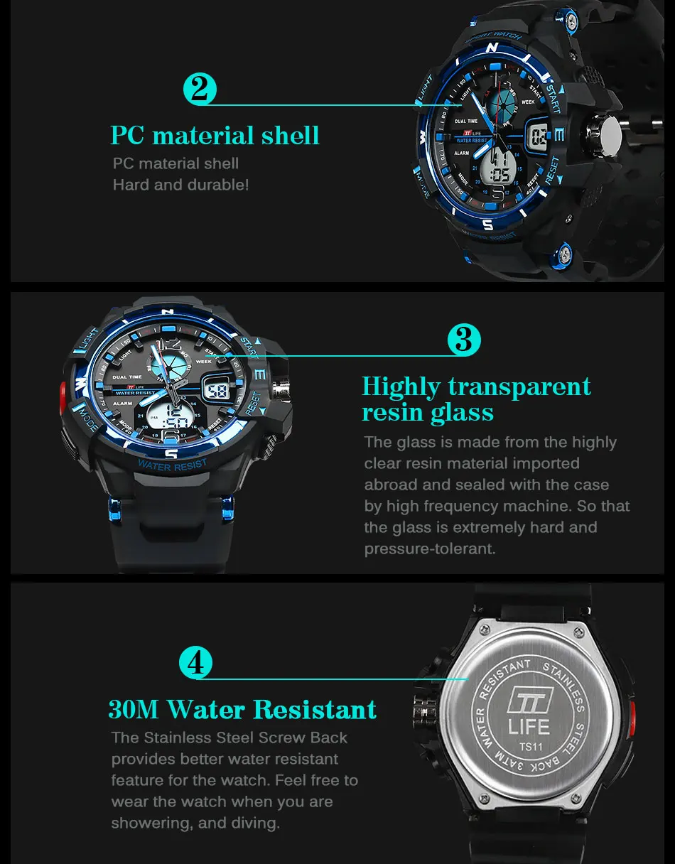 | [해외] TTLIFE 남성 비즈니스 패션 아날로그 디지털 스포츠 시계 30 메터 방수 LED 시계 듀얼 디스플레이 쿼츠 시계 Montre 옴므 TS11 |