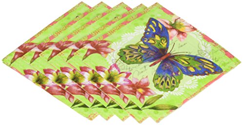 Paperproducts Design Aporia Butterfly Paper Beverage Cocktail Napkin, 5 by 5-Inch