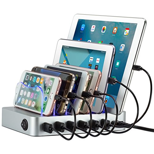 -. Feature : CLEAN & ORGANIZED - No more cluttered cables. No need to plug a bunch of chargers on your power outlet for every phone and tablet you have. This compact electronics charging station keeps everything in one place - nice, clean and organized. Note that, the short cables displayed in the pictures are not included in the package. You can use your own cable or buy them separately. / WORKS WITH ANY DEVICE - This USB charging station has 6 slots and 6 USB ports that can hold and charge up to 6 devices simultaneously. This device charging station works smoothly with any USB-powered device such as Apple iPhone, iPad and Android smartphones, tablets, cameras, eReaders, Bluetooth headsets, speakers and more. / FAST & SMART CHARGING - This multiple USB charger station has 6 high-power 2.4A fast charging ports for power-hungry devices like tablets and large smartphones. The USB hub can deliver up to 10A from all 6 ports collectively. / SAFETY & PROTECTION - The rubbery base of this cell phone docking station has a good grip for holding all devices preventing from slipping out. Each port of this multiple charging dock recognizes the exact voltage requirements of a connected device and matches the power output for a safe and quick charging. Its cutting-edge circuitry protects against short-circuit, over-voltage, over current, and over-charge. / WARRANTY & MONEY-BACK GUARANTEE - We offer a 1-Year Limited Warranty with this mobile docking station. We also offer a 30-day Money Back Guarantee through Amazon so your purchase is safe and protected.