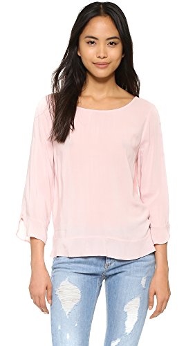 Rayon challis boat neck blouse with ruffle sleeve and hem details