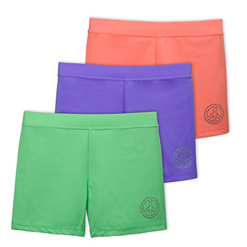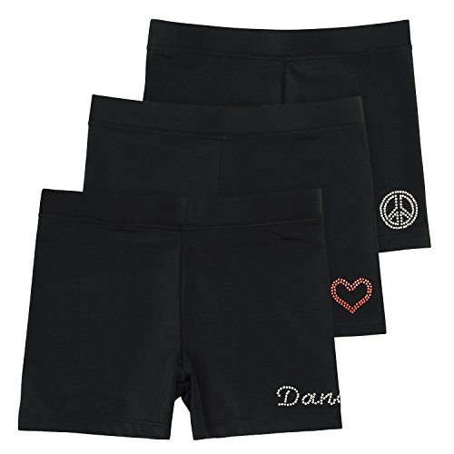 Get up and Dance! The snug but super comfy Ella Dance Shorts (3-Pack) provides the the perfect balance of flexibility, coverage, and style your little one needs in a dance class or as a gymnast. Cute Peace sign designed with Rhinestones on the bottom left. With so many fantastic funky colors available in 3-Pack sets, there's no stopping your little one from having fun - Say goodbye to struggling with leotards or tights! Features: - Comfortable stretch shorts for dance or gymnastics - Encased elastic waistband for extra comfort - Tagless back ensures itch-free moments - Rhinestone embellishment for style - Made from 82% Nylon and 18% Spandex + Machine washableAbout Lucky & Me: